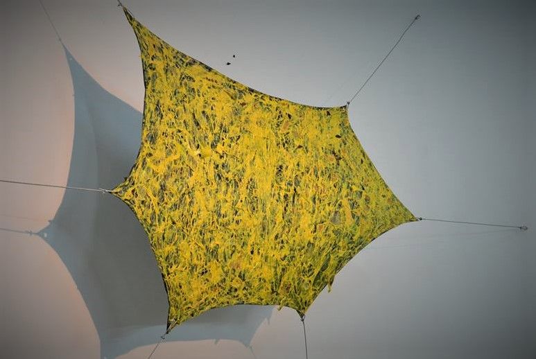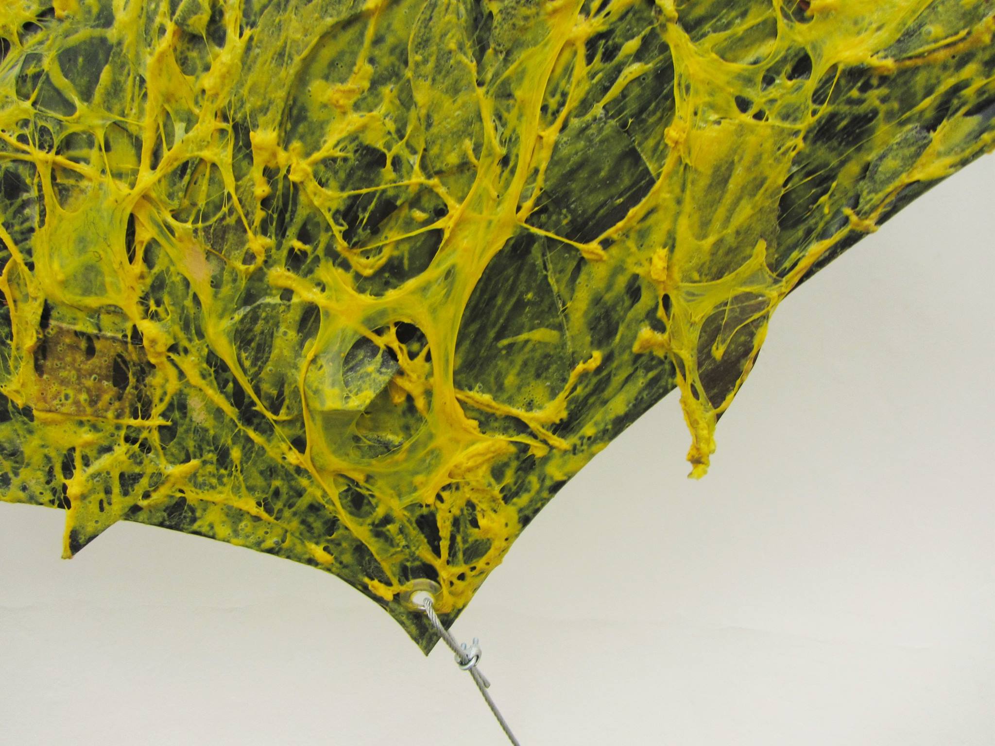 La obra de Deyvid Montoya, Rumores, puede considerarse como un testimonio de la desfragmentación del ser y la descomposición del yo, hasta el desaparecer. Un tejido de solución sobre lona vulcanizada, muestra la preocupación social del autor por problemas tales como el del adicto y la drogadicción. La técnica, action-paiting (del tipo Jackson Pollock), poetiza de cierta manera ese desaparecer del sujeto y la desintegración de su memoria, como esencia, del yo pasado.