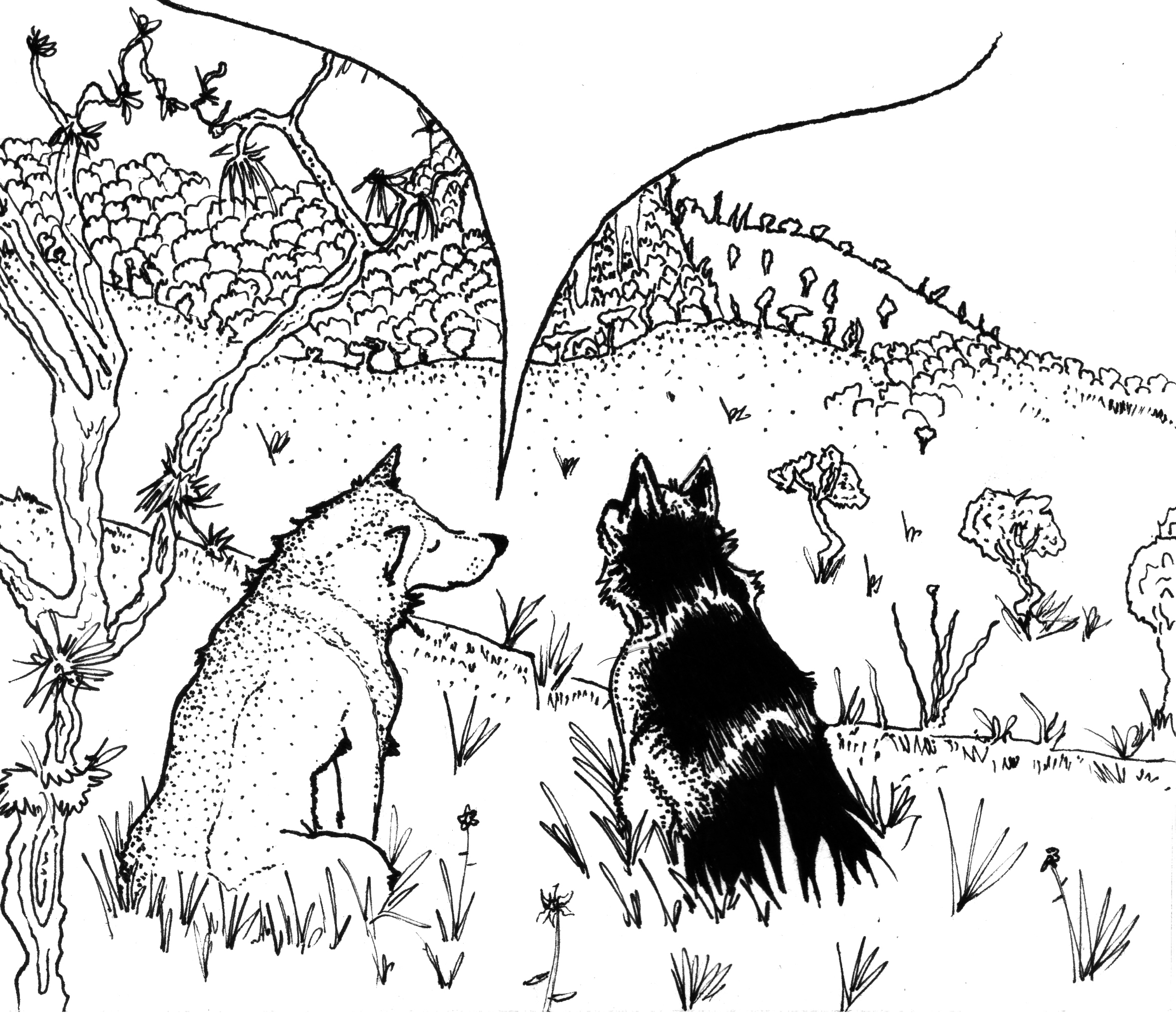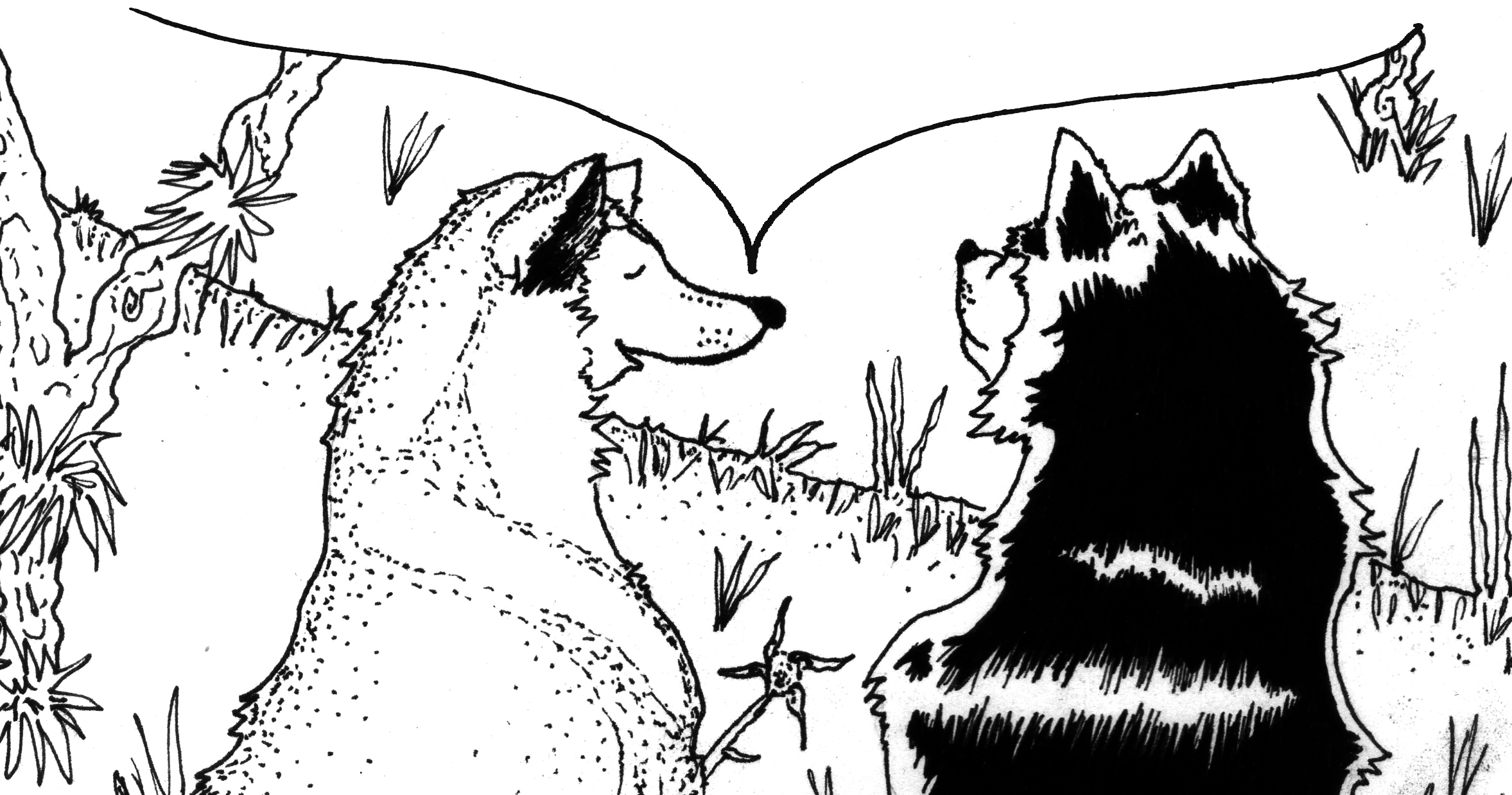 Loba Blanca: A veces pienso en la funcionalidad de nuestro cuerpo. Por ejemplo, me pregunto por las garras, no me gustan las garras largas. Ahora que somos una manada sedentaria y cultivamos nuestro propio alimento, no sé, considero que son muy improductivas, casi un estorbo —de no ser por su adecuación tan placentera para rascarnos—, porque es obvio que ya perdimos su función biológica que otrora permitía la caza; preferiría, por ejemplo, que las almohadillas de nuestras patas fuesen más dóciles e independientes y que nuestro dedo interior fuese tan prensil como el de los monos, tal vez así tardaríamos menos en construir cercados y podríamos dejar de tomar todo con el hocico. ¿Usted se ha preguntado por esos asuntos de nuestro cuerpo?