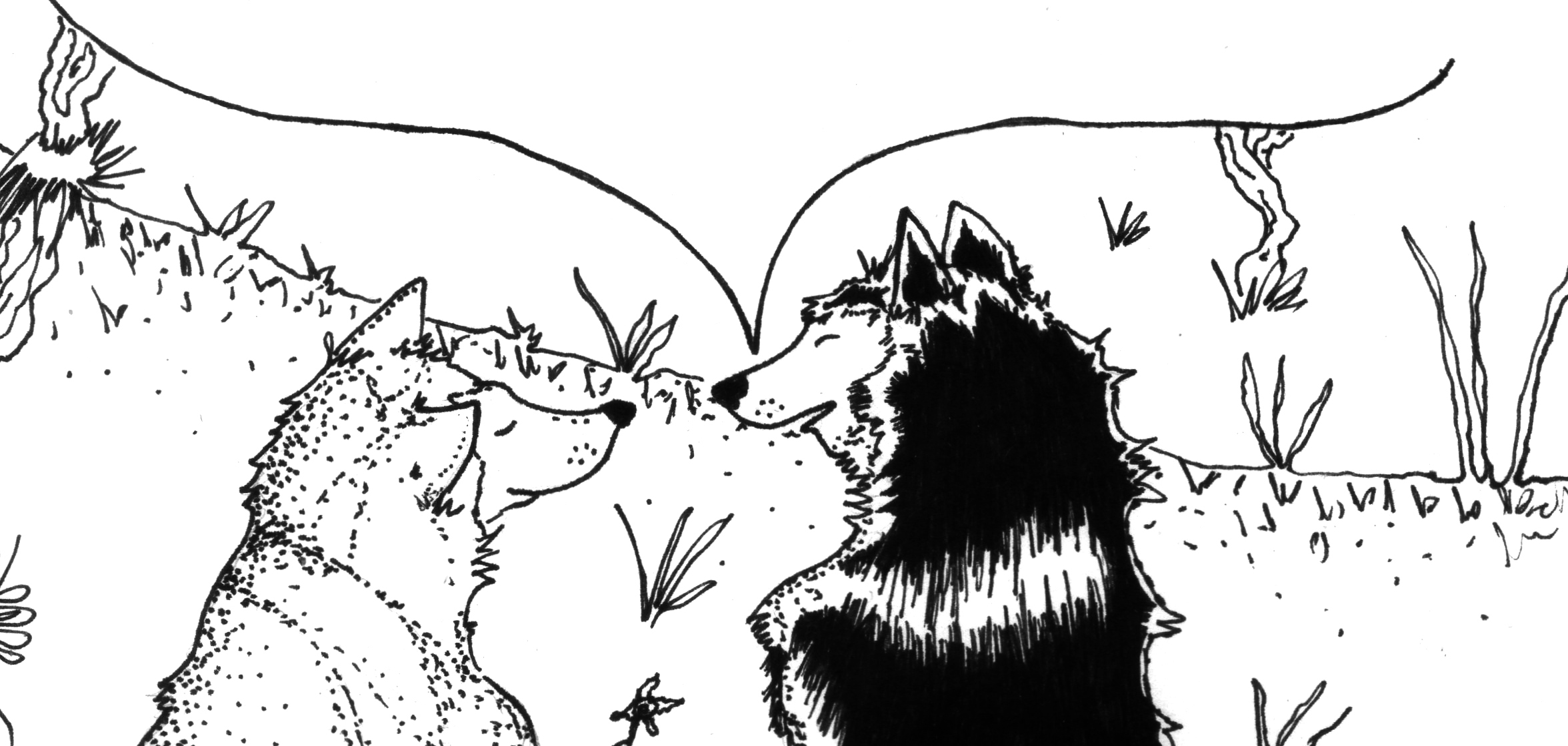 Two wolves in front of a hill. A conversation about the physiological poetics of animals.