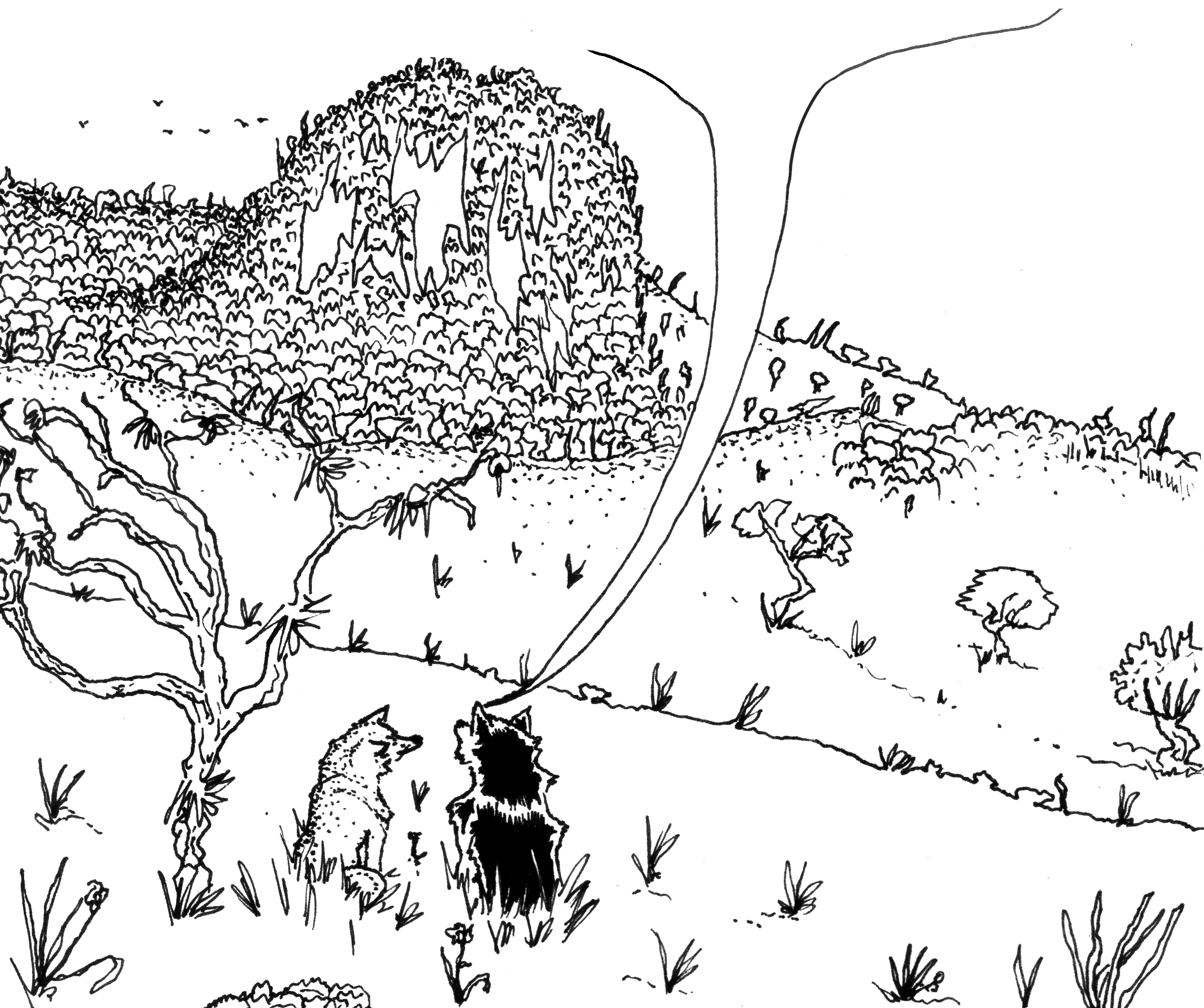 Es probable que nuestras garras y almohadillas se modifiquen y coincidan de a poco con nuestro actual estilo de vida, pues este parece reclamarlo. Cuando pase, esos lobos (si es que aún se identifican así) descubrirán contiguamente sus propias alegrías fisiológicas; yo esperaría que no promovieran una inmovilidad tan ceñida como la nuestra, a veces me aburre quedarme tanto en casa, ¿a usted no le pasa que amanece con un deseo incontenible de salir y alejarse de todo lo suficiente como para sentirse forastera? Hoy podría ser uno de esos días de extrañamiento, ¿qué le parece si subimos esa colina que se levanta entre los árboles?
