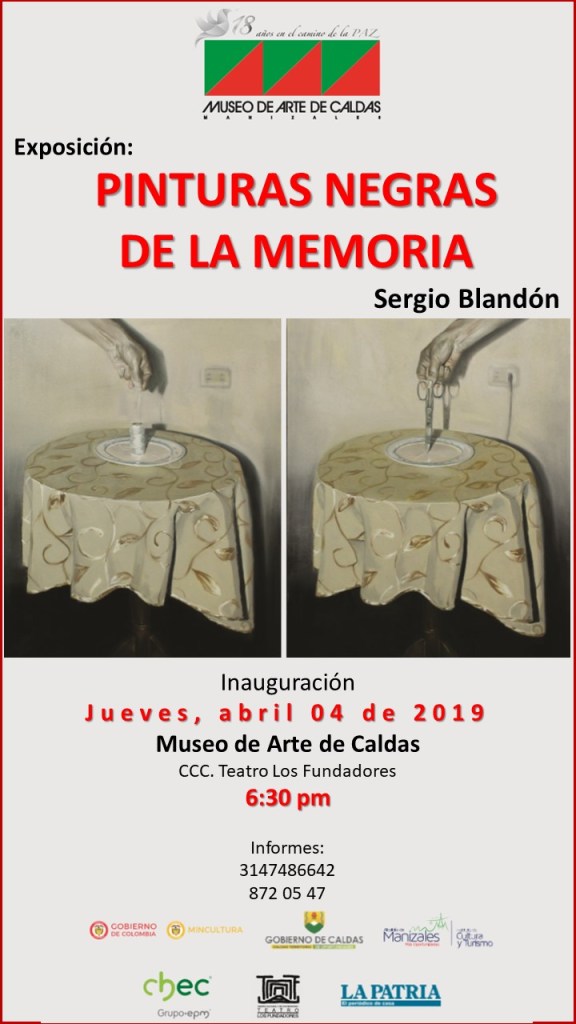 Nota 1: Les compartimos el texto curatorial escrito para la exposición por el maestro Diego Escobar Correa: “La decisión de hacerse artista no es sencilla, pues pesan innumerables cargas emocionales, sociales o familiares que la cuestionan. Ahora bien, decidir lanzarse a la incertidumbre del mundo del arte acarrea enfrentarse a los pesos de toda la historia del arte y la expectativa de ser aceptado en sus circuitos. El caso de Sergio Blandón, es el de quien desertó de la docencia universitaria para dedicarse de manera profesional a la actividad artística. Conducta cuestionada seguramente por las instituciones y las personas que hacen difícil tomar la decisión de convertirse en profesional del arte. Este artista trae consigo una concepción del arte amplia, sin límites, le importa el arte sin reparo alguno. Su medio es la pintura, deja claro que su interés se encuentra en lo que pueda decir, en la capacidad de poner un altavoz en las imágenes que presenta, su lucha es la de quien emite el discurso mudo de la imagen y espera ser oído según mencionaba Lessing. Para Blandón, la pintura es el lugar donde está toda su atención, es lo que sabe hacer; busca insistentemente hacerse pintor, porque así lo quiere, lo siente y lo desea. Las pinturas que trae son un reto a la mirada, la que ya no se detiene por el estallido de las imágenes en tiempos presentes. Para muchos la pintura es anacrónica, tal vez porque hoy no logra responder al deseo de la inmediatez, o de la interactividad como si responden otros medios. La pintura requiere de tiempo, de una dedicación monacal, en este artista se evidencia esta acción pictórica. Las pinturas de Blandón, requieren de tiempo para ser vistas, la mirada debe detenerse, para develar lo que está allí, para sincronizarse con el tiempo de sus pinceladas, para entenderlas tal como lo entendía Gadamer. Cada pintura es una fugacidad de un tiempo vivido, es un recuerdo propio y ajeno, allí se configura la imposibilidad de detener el tiempo, son tiempos vividos por unos y para ser vividos por otros, nosotros. Aquí está la fantasmagoría de la vida, se trata de pinturas de acontecimientos íntimos, domésticos, cotidianos, que sorprenden por la capacidad de encender en cada uno el anhelo de lo que ya no está, es el deseo por lo efímero.”