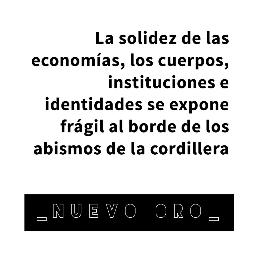 Creo que un tercer elemento que caracteriza a Nuevo Oro es su afán de elevar los discursos locales. Ante los procesos convulsivos -ya reaccionarios, ya revolucionarios- que estamos viviendo en América Latina, abunda el análisis politológico o economista (que tienen su valor, por supuesto). Nuevo Oro viene a levantar las voces de personas que están atravesadas en su día a día por eventos quizás más pequeños, con significados esquivos. Jerarquizar esa cotidianidad y amplificar la micropolítica que se da en la intimidad de algunas calles o algunos barrios, es a mi entender una labor valiosa e importante. Por todas estas razones, me parece que Nuevo Oro propone re-enfocar la mirada: atender a lo macro-regional o nacional, sin perder de vista los pequeños gestos (ya de violencia, ya de resistencia). Así, diría que Nuevo Oro es una publicación habitada por un valor político, en el doble sentido de importancia y de coraje.