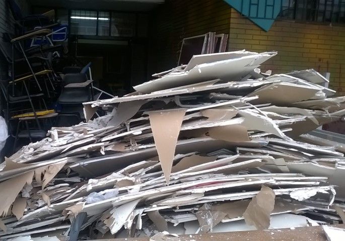 Figura 2. Semillero Dermis. (2018) Fotografías de los escombros producidos tras explosión en el Programa de la Licenciatura en Artes Visuales, 8 de marzo [Fotografía]. Bogotá: Universidad Pedagógica Nacional. Fotografía de Ana Edith Sáenz Imagen cortesía de la artista]