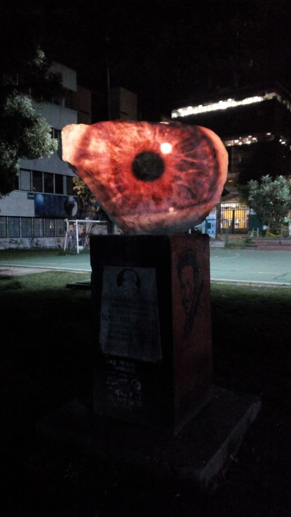 En este ensayo presento las tres primeras acciones que realizamos en el proyecto de investigación-creación La Piedragógica: Creación de un antimonumento para hacerle preguntas a una piedra [1]. El proyecto fue desarrollado por los docentes Andrés Camilo Bueno, Ana Edith Sáenz y Carolina Rojas Valencia (quien escribe). Con la participación de los estudiantes Javier Martínez, Jhon Martínez, Juan David Buitrago, Rocío Torres, Edicsson Linares y los egresados Yoana Ortiz y Hakeri Cotacio, integrantes del Semillero de investigación-creación colectiva en contexto DERMIS. Así como con el apoyo de las estudiantes Natalia Barrero e Ingrid Bohorquez, en calidad de monitoras de investigación. Todos vinculados a la Licenciatura en Artes Visuales (LAV), de la Universidad Pedagógica Nacional (UPN). El proyecto se realizó con el propósito de resignificar —desde lo sensible— el sentido de la expresión “la Piedragógica”, utilizada generalmente para referirse a la Universidad Pedagógica Nacional. Las dos primeras acciones, parten del proceso de experimentación a partir de materiales residuales de los enfrentamientos violentos entre grupos de encapuchados[2] y el Escuadrón Móvil Antidisturbios (ESMAD) de la Policía nacional [3]; la última acción consistió en la realización de un antimonumento, estrategia que nos permitió generar relatos propios y actuales sobre nuestro contexto.