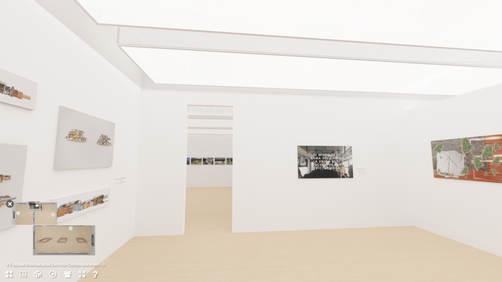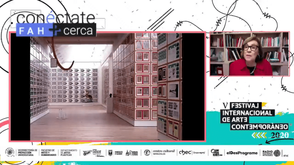 Ahora bien, es fácil asimilar las conferencias virtuales, pero ¿qué hay de los performances y las salas de exposición? ¿acaso la acción performática no exige el contacto con los espectadores? ¿no reclaman las obras que se les haga frente en toda su envergadura? Con respecto a esto último sucede algo muy interesante, y es que, si bien la exposición virtual no reemplaza la experiencia de desplazarse y asistir a la exhibición de las obras en persona, la sala de exposición virtual tomó nuevos significados, pues, en una suerte de metaficción, se convirtió en sí misma en un archivo. Allí pueden encontrarse, junto a las nuevas propuestas visuales, grandiosas obras que ya estuvieron expuestas en algunas de las salas de exposición del festival anterior, como es el caso de Nacer en el vacío, de Martha Isabel Calle.