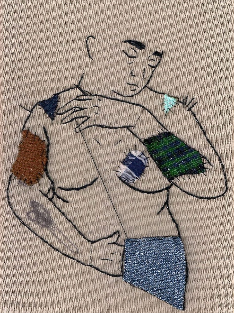 Paula: Con el tema del cuerpo gordo, Jenny Saville es mi referente top, trabaja el gran formato y los cuerpos no estereotípicos, es muy expresiva la mancha, muy cargada, muy fuerte todo lo que hace. Con el bordado empecé con la mexicana Gimena Romero, ella lleva como diez años investigándolo todo lo que tenga que ver con las artes textiles, también es grabadora. En los primeros trabajos que empecé a hacer me inspiré en Shintaro Kago que trabaja ero guro, lo mismo que Junji Ito. De la cultura popular me gustaba mucho tomar referencias de videos musicales, dentro de estos está Billie Eilish con todo eso de las lágrimas negras y los colores vivos, pero al mismo tiempo todo tan sombrío, me gustaba mucho eso. Uno puede buscar referentes en muchas partes, además de los artistas plásticos, digamos de la música, del cine, de todo.