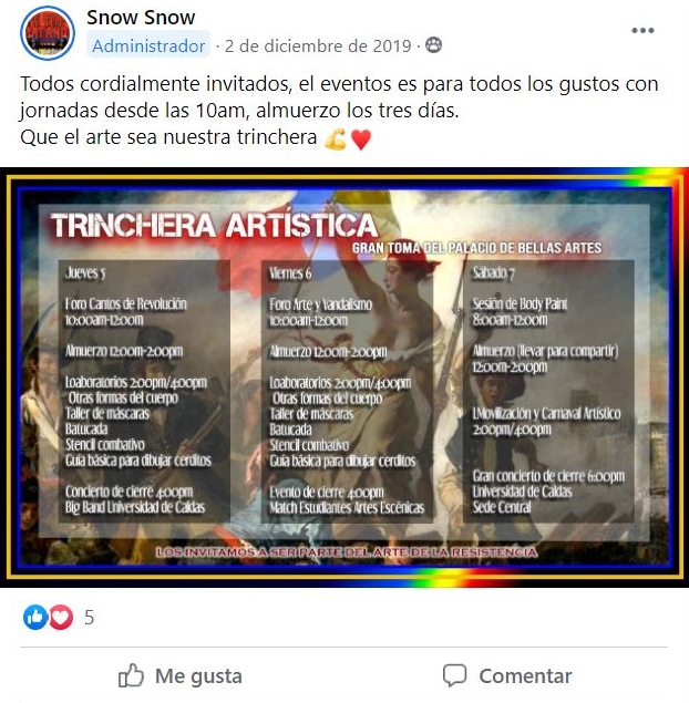 Figura 9. Cristián R.H. (2021). Trinchera artística [Cartel digital]. Manizales.