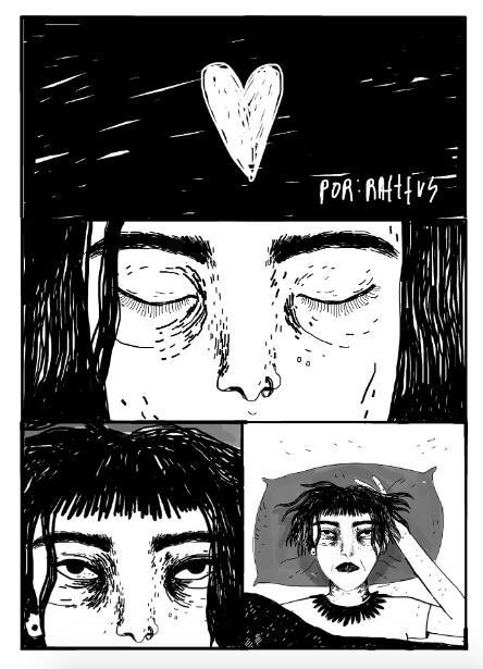 Camila Ramos Rodríguez (Manizales, Colombia 1996) es una activista feminista que convirtió las artes plásticas en su lenguaje de protesta, por medio de la interconexión entre el feminismo, el dibujo y el punk, propone obras para encender el corazón en fuego de lucha y llenar la mente de preguntas sedientas de respuesta. Trabaja en colectivas de arte y feminismos como Maleza y Bandidas. La primera se dedica a convocar mujeres para conversar temas de relevancia y la segunda, se enfoca en pintar murales con mujeres transeúntes.