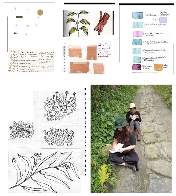 El proyecto de investigación-creación se propone la recopilación y exploración de datos, símbolos, archivos y experiencias en torno a los pigmentos naturales, para plantear el término: pigmentos salvajes. Centrándose en los pigmentos naturales de Colombia, en tres paisajes: el bosque de niebla, la sierra nevada y el bosque húmedo tropical. Con interés procesual, simbólico, ritual, artesanal y feminista. En su primera etapa buscó compartir, explorar y aprender con la dirección de los talleres: Las Plantas y sus Colores, Taller Libro de Artista, financiados por el Banco de la República sucursal Manizales; y el taller: Fabricación de Materiales Pictóricos con Pigmentos Naturales, en Caza Retazos. Finalmente, encuentra una etapa de creación en la elaboración de un libro de artista a partir de experiencias, entrevistas y recetas. Con el objetivo de ser fuente de consulta para cualquier persona que desee hacer sus propios mate- riales pictóricos base, desde una relación sensible y recíproca con el paisaje. En la búsqueda de otras formas de generar conocimiento y restaurar o renovar una vinculación empática entre personas, plantas, paisajes y rituales. Para el Seminario Teorías estéticas contemporáneas de la Maestría en Artes de la Universidad de Caldas, se propone un archivo colaborativo como parte del proyecto, inspirado en el ritual de sanación de conceptos indígenas Maya. En su mundo físicomágico, los elementos mencionados tienen un significado y una función precisa que invitan a tejer y encontrar un símbolo personal de sanación, quita penas, con el pigmento de las plantas.