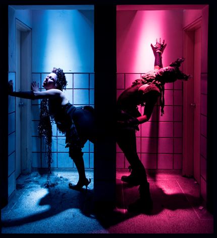 Cuero de animal, piel de animal, nuestra piel, cuerpos desnudos, cuerpo humano, somos piel, somos cuero. Usar formas danzando en medio de colores y oscuridad, descubrir la geometría. De repente, bailar con animales en medio de rituales. Pensar que somos bestias disfrazando nuestros cuerpos. Volver al origen, a lo que somos y preguntarnos ¿De qué estamos hechos? ¿Cómo nos vemos? ¿Qué color tenemos? Bailar sin piel, sin ataduras, girar y perderse en los cuerpos, poder contarlo, sin ropa-sin piel. (Ana Sofía)