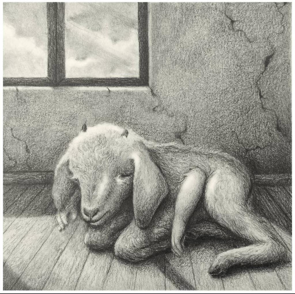A partir de ahí es cuando vemos a Daniel usar el trauma como aliado para su creación artística sin llegar a romantizarlo, él puede verse a sí mismo como el monstruo que en algún momento de su vida le dijeron que era y que resultó siendo, pero es que abominación, anomalía o como quieran decirlo para mí, la persona que escribe esto, es un sinónimo de pureza e inocencia porque viene como un insulto de una sociedad asquerosa y enferma que condena todo aquello que no entiende. Daniel logró verlo de la misma forma, abrazar todo lo que lo hace ser horrendo dentro de los estereotipos sociales, con los que ha crecido, dibujándose como un cordero nacido con brazos humanos (ver figura 3), que por cierto en mi opinión así debió ser la oveja de Lamb de Valdimar Johannsson, o como cabezas deformes que no son autorretratos personales, simplemente es él dibujando la humanidad y la ambigüedad moral y física con la que puede identificarse.
