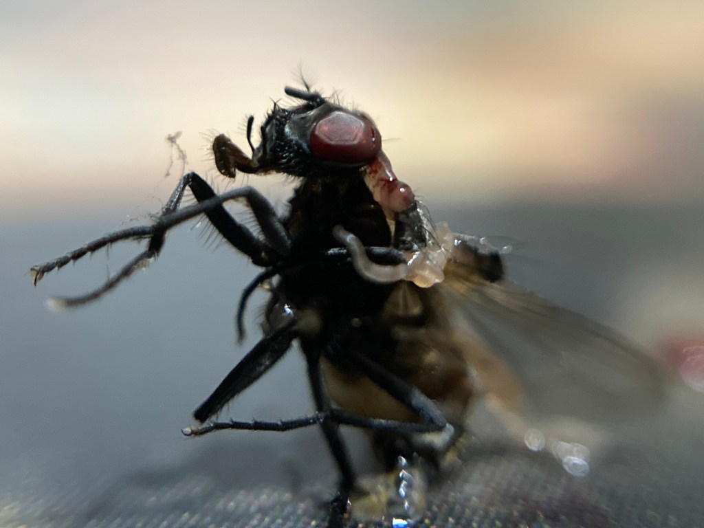 [1] El interés de este proyecto surgió en medio de un estallido social. De estar frente a un televisor viendo noticias politizadas, opinando sobre la muerte de personas y nombrando a los culpables a su propio beneficio. Luego estaban las redes sociales, los live de instagram de mis amigos, viendo como llegaba la policía o civiles y les hacían daño, muerte y desaparición de muchos y muchas de mi edad. Luego estaba la imagen de mi padre, un hombre que fue policía y también le dolía la muerte de sus iguales. Entonces entendí que la muerte en el campo, en los barrios o las universidades, no era de buenos o malos o de quienes vestían de verde oliva o quienes taparon su cara con capuchas, sino de quienes tenían el control y veían al pueblo como un ejército de peones. Esto me hace preguntarme sobre ¿Qué violencia me había tocado vivir a mí? Ya sea adentro o afuera, pública o privada, el sentir y el resistir dejó de ser de importancia para este tiempo en donde vamos a mil por hora. La fragilidad del cuerpo que aguanta está opacada por una serie de dinámicas que se repiten año tras año, una tradición que detona una violencia. Mi espacio es mi casa, un lugar que es un todo, una buhardilla, un sótano, una habitación. Mi casa es muy pequeña, sus paredes difusas y mi barrio termina siendo una gran casa. Un nido de moscas, en donde nacemos moscas, un insecto frágil y sin importancia, fácil de matar y espantar ¿De qué manera se mata esa mosca?
