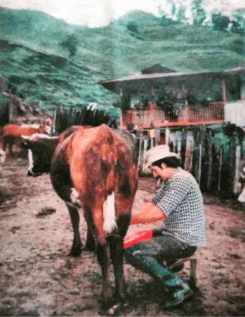Figura 4. Don Ricardo ordeñando. Vereda la Lejandria Herveo-Tolima. Fuente: Archivo familia Aguirre.