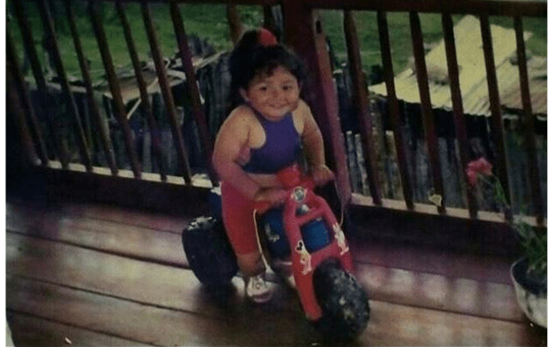 Era yo con un vestido de jean, quizás tenía uno o dos años, vi el amor de mi hermana por mí, sonreía.