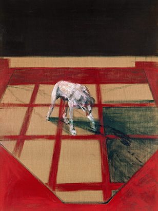 Sin necesidad de emplear una visceralidad tan figurativa como en otras obras, Bacon retrata la del perro con manchas tristes, involucrándose en un dilema moral, pues, si se piensa bien, todos tienden a padecer el mismo destino. No se puede identificar si se trata de una recompensa o una retorcida maldición por su fidelidad al humano: el perro no morderá la mano que lo alimenta, ni siquiera tras haber recibido cien azotes, es un pobre sin bienes terrenales, la tierra es su lugar de descanso, está hambriento la mayor parte del tiempo, protege a su amo y lucha contra el enemigo arriesgando su integridad, está contento con lo que se le da, cuando muere no deja herencia alguna. Lo único que aliviaba al artista cuando se enfrentaba a este dilema canino, creo yo, era el hecho de que el perro podría no ser consciente de su desdicha, porque sólo reconoce la recompensa y no acumula rencores como nosotros lo hacemos. Francis Bacon retrataba perros con una tristeza que no podía confirmar, pero con la certeza de que todos los seres en el planeta vagamos como perros callejeros, tratando de buscar un hogar, sin saber si lo merecemos.