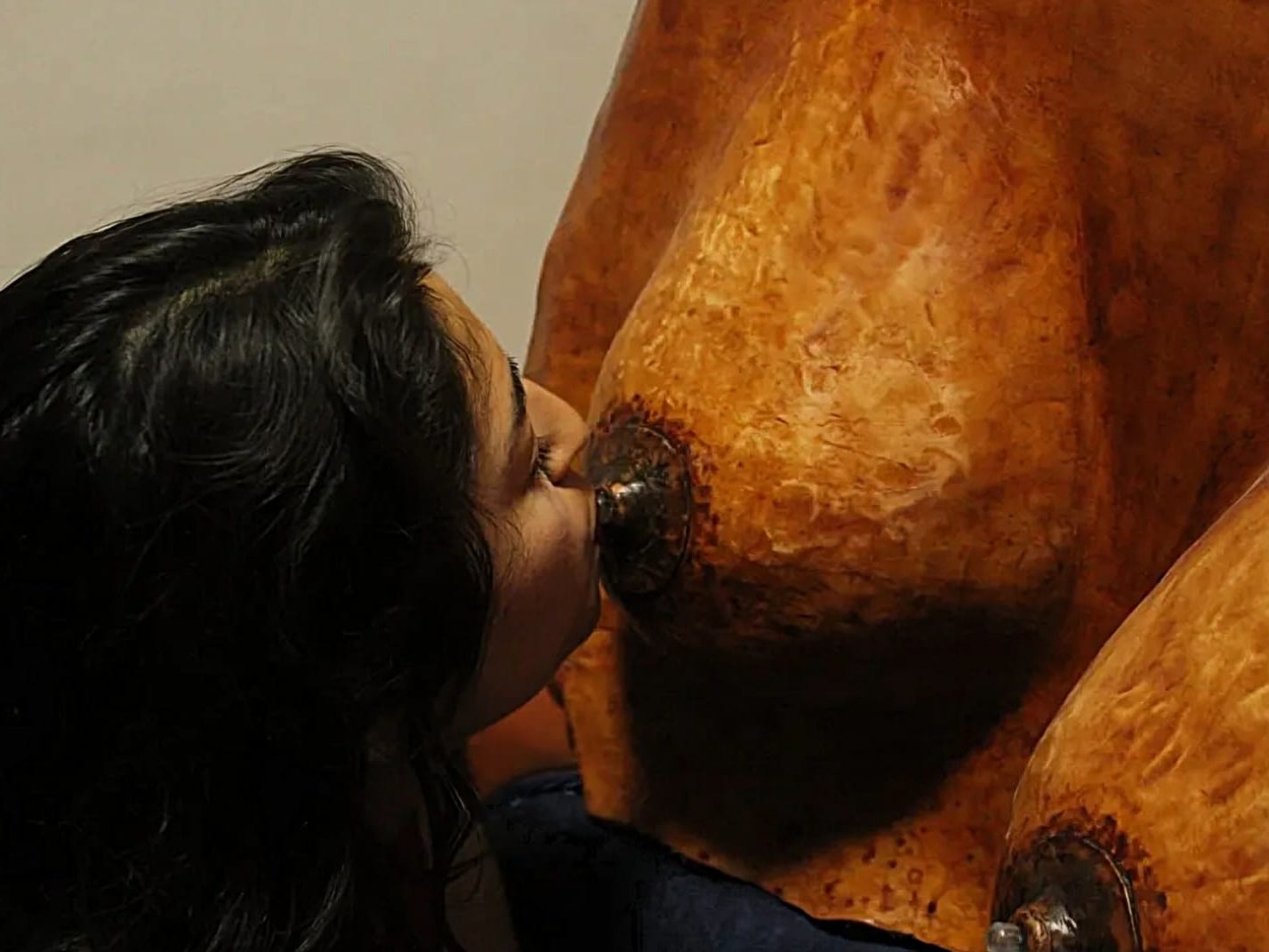 La caída nos enfrenta a las tensiones históricas entre maternidad, deseo y redención. La exposición no sólo cuestiona la imposición binaria que se nos ha hecho a las mujeres, sino que también evidencia cómo estos arquetipos siguen limitando la forma en que las mujeres vivimos nuestro cuerpo y deseo. Obras como Perla revelan la maternidad como una experiencia ambivalente, atravesada por el dolor, la herencia emocional y el deseo profundo de conexión. La instalación que combina el acto de fumar con el de amamantar sugiere un retorno simbólico al origen, a esa necesidad humana de afecto y calma que comienza en el pecho materno. En este sentido, La caída no se presenta como un castigo, sino como una oportunidad para mirar de frente nuestras fisuras y resignificarlas.