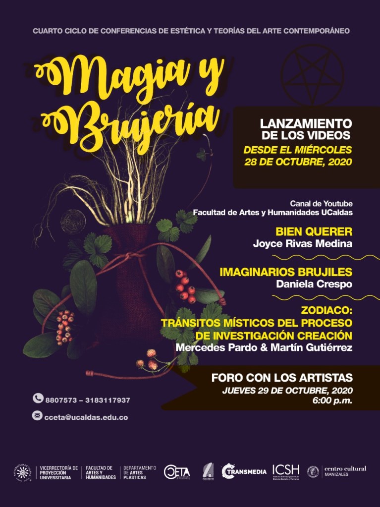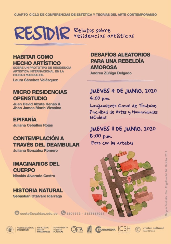 En el 2020, el Ciclo de Conferencias de Estética y Teorías del Arte Contemporáneo (CCETA-4) se realiza de manera virtual por el canal de YouTube de la Facultad de Artes y Humanidades de la Universidad de Caldas. Los artistas invitados a participar del proyecto compartieron sus charlas en video y se realizó un foro en vivo con las mediación de un estudiante del Semillero Mediaciones y Teorías del Arte.